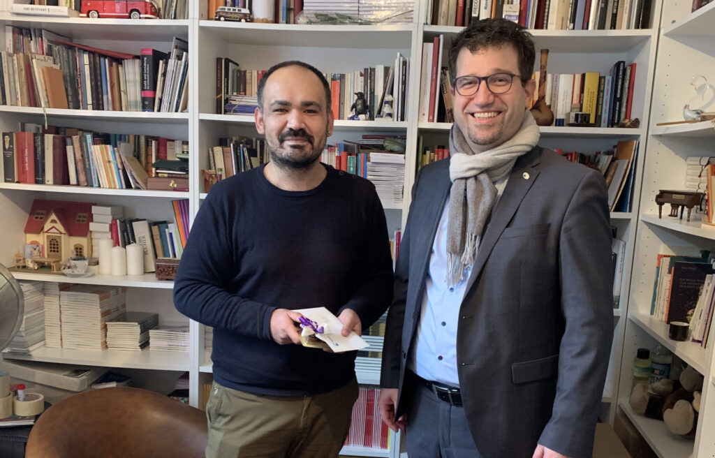 Nettetal (red) / 28. Februar 2022 Vor wenigen Wochen wurde bekannt, dass einer der renommiertesten deutschen Lyrikpreise nach Nettetal geht. Dinçer Güçyeter aus Lobberich erhält für sein Werk „Mein Prinz, ich bin das Ghetto“ den seit 1984 verliehenen Peter-Huchel-Preis und reiht sich damit in die Liste der bedeutendsten Gegenwartslyriker ein. Vor einem offiziellen Empfang im Rathaus der Stadt Nettetal ließ es sich Bürgermeister Christian Küsters nicht nehmen, Dinçer Güçyeter persönlich in seinen Verlagsräumen zu besuchen und zu gratulieren. „Ich freue mich sehr über diese besondere Auszeichnung für Herrn Gücyeter. Sie bestätigt, welchen hohen Wert seine Arbeiten haben.“