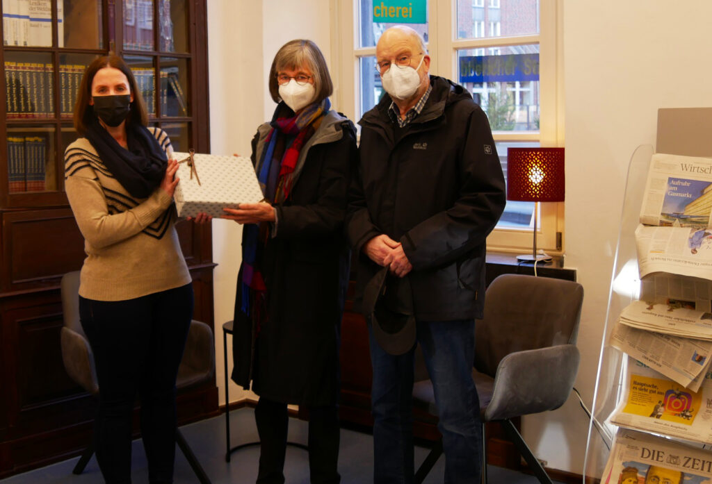 Gewonnen haben Karola und Christoph Schmidt aus Nettetal. Zu gewinnen gab es das Spiel „Mörderische Dinnerparty – Die Stimme aus dem Jenseits“, ein Krimidinner für Zuhause. Der Preis wurde am vergangenen Donnerstag von Büchereileiterin Sabine Ließfeld überreicht. Das Team der Stadtbücherei gratuliert zum Gewinn und freut sich schon heute auf eine neue Rätselrunde beim literarischen Adventskalender.